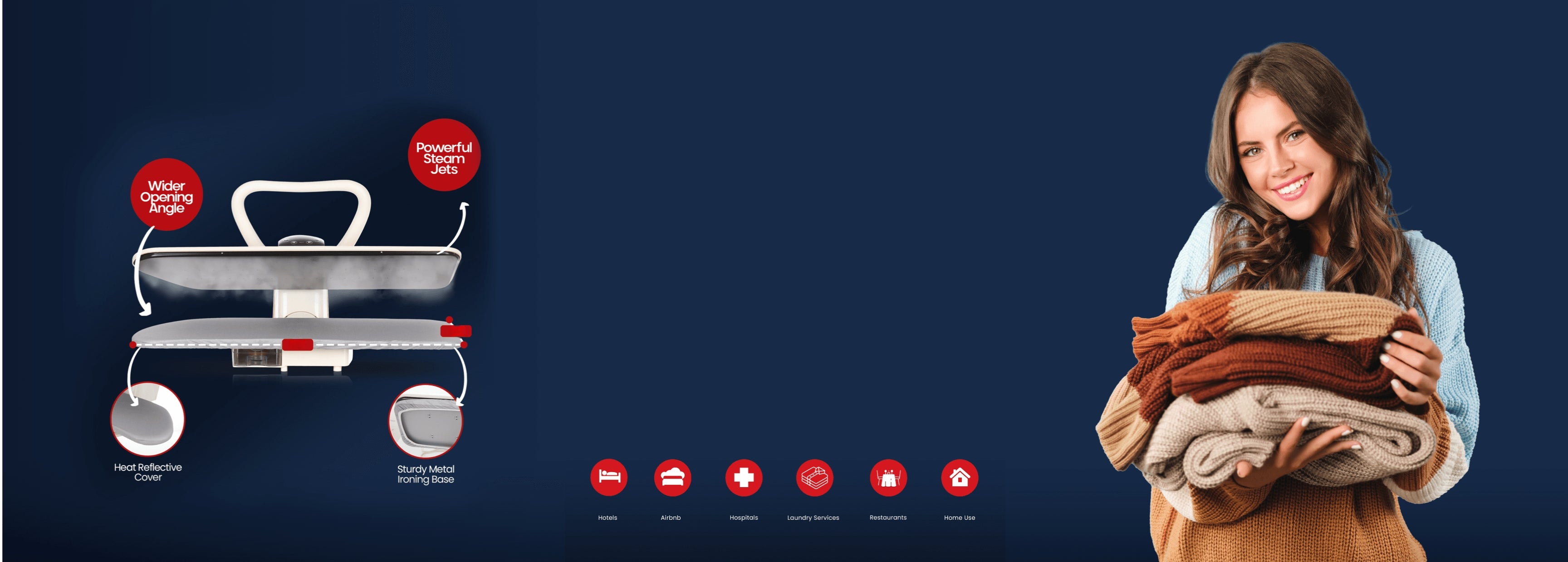 With a collection of steam press equipment for both the home and small business, we appeal to the laundry, hospitality, and healthcare industries as well as domestic consumers, which gives us insight into the wide range of users and their needs, enabling us to continue to design the highest quality products in the industry.