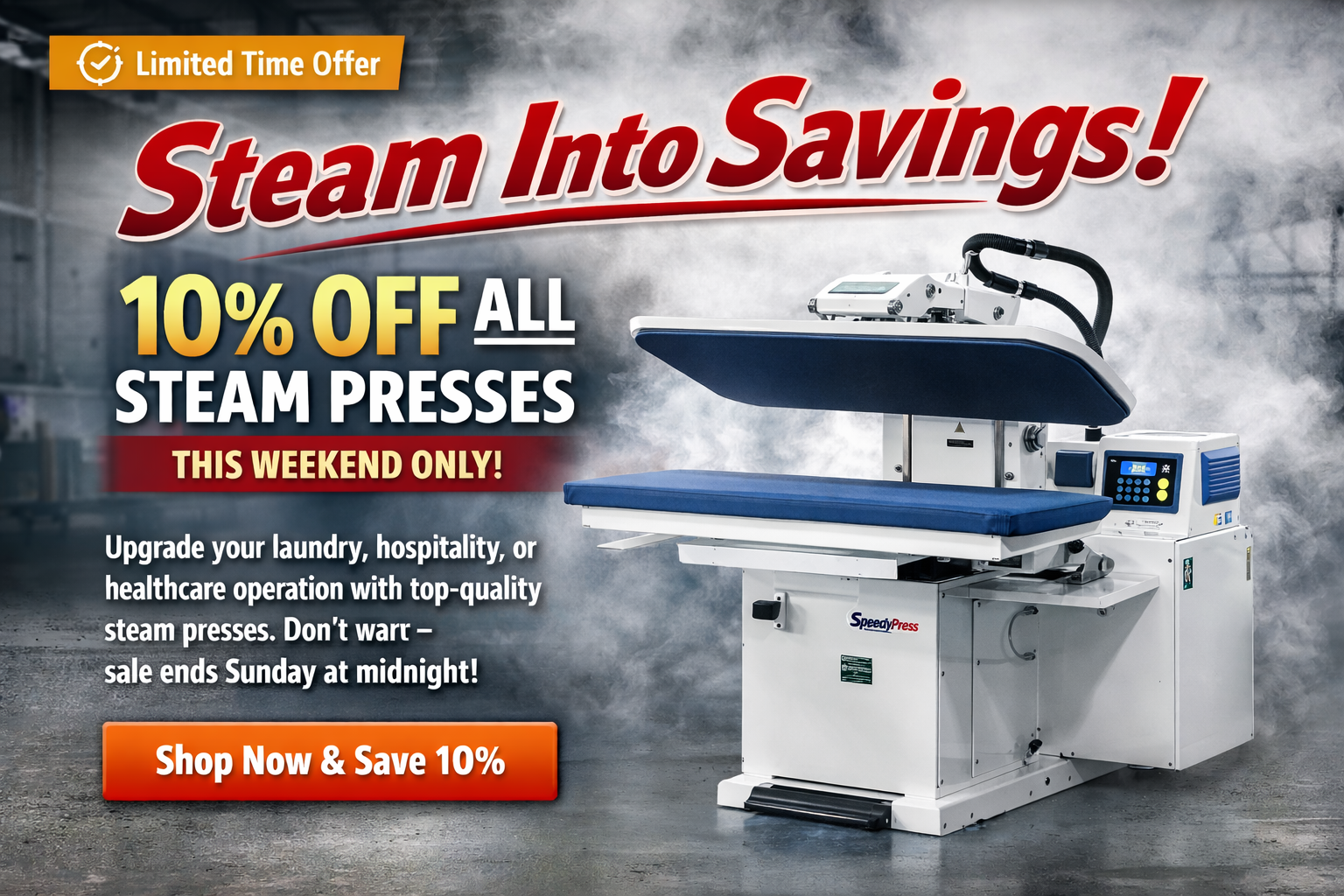 With a collection of steam press equipment for both the home and small business, we appeal to the laundry, hospitality, and healthcare industries as well as domestic consumers, which gives us insight into the wide range of users and their needs, enabling us to continue to design the highest quality products in the industry.